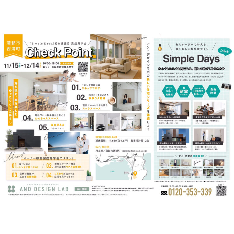 うら面では完成見学会のチェックポイントを写真とともに紹介。