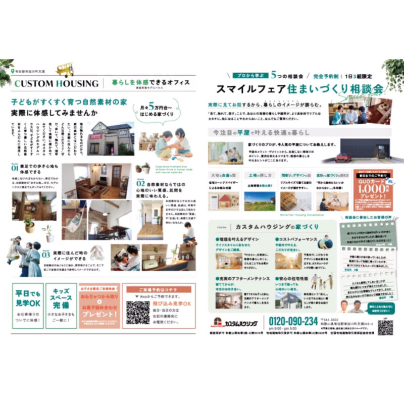 カスタムハウジング様の住まいづくり相談会チラシ。