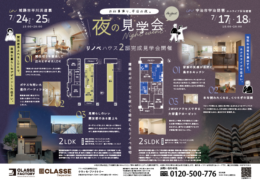 クラッセ住宅販売様の「夜の完成見学会」集客用チラシを制作しました。