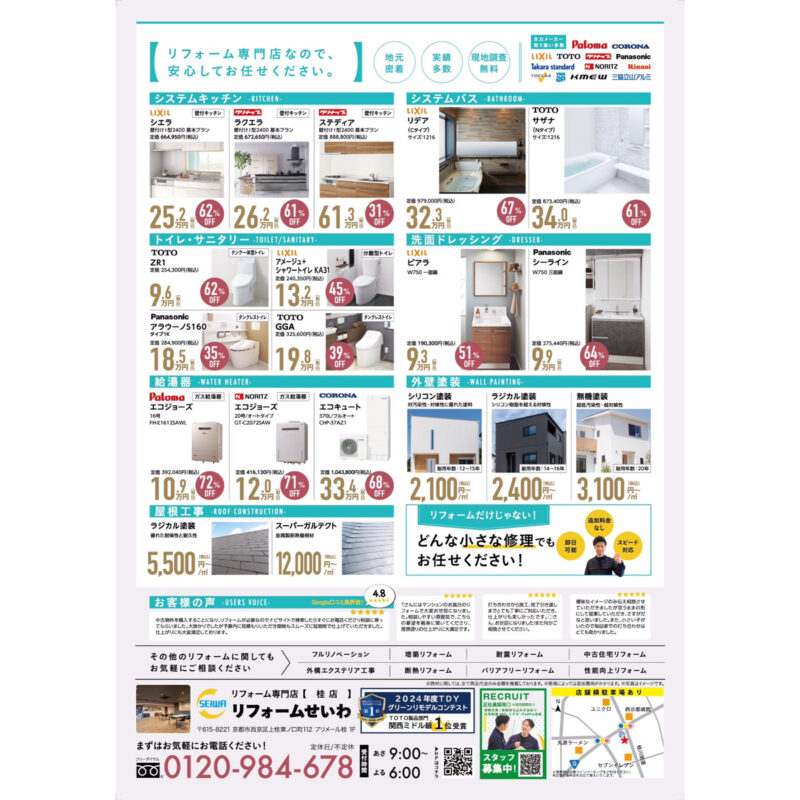 西和不動産様のリフォーム専門店「リフォームせいわ」チラシ