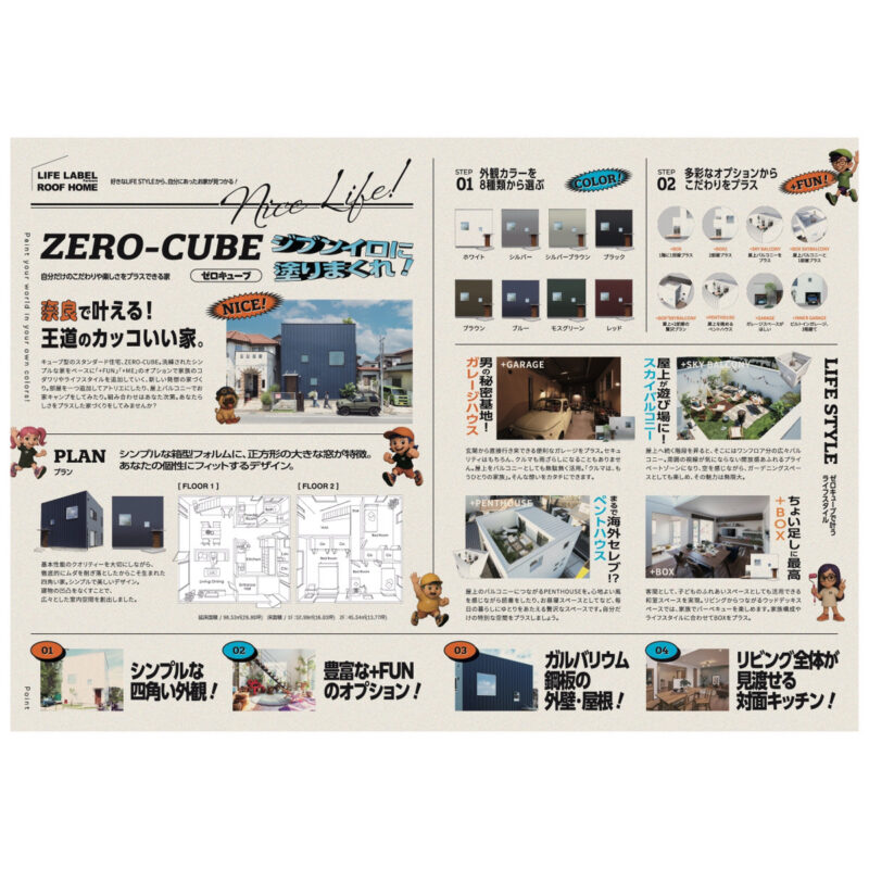 ルーフホーム様 × LIFE LABEL様による「ZERO-CUBE」マガジンチラシ。